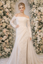 فستان زفاف من الدانتيل والشيفون مع ذيل